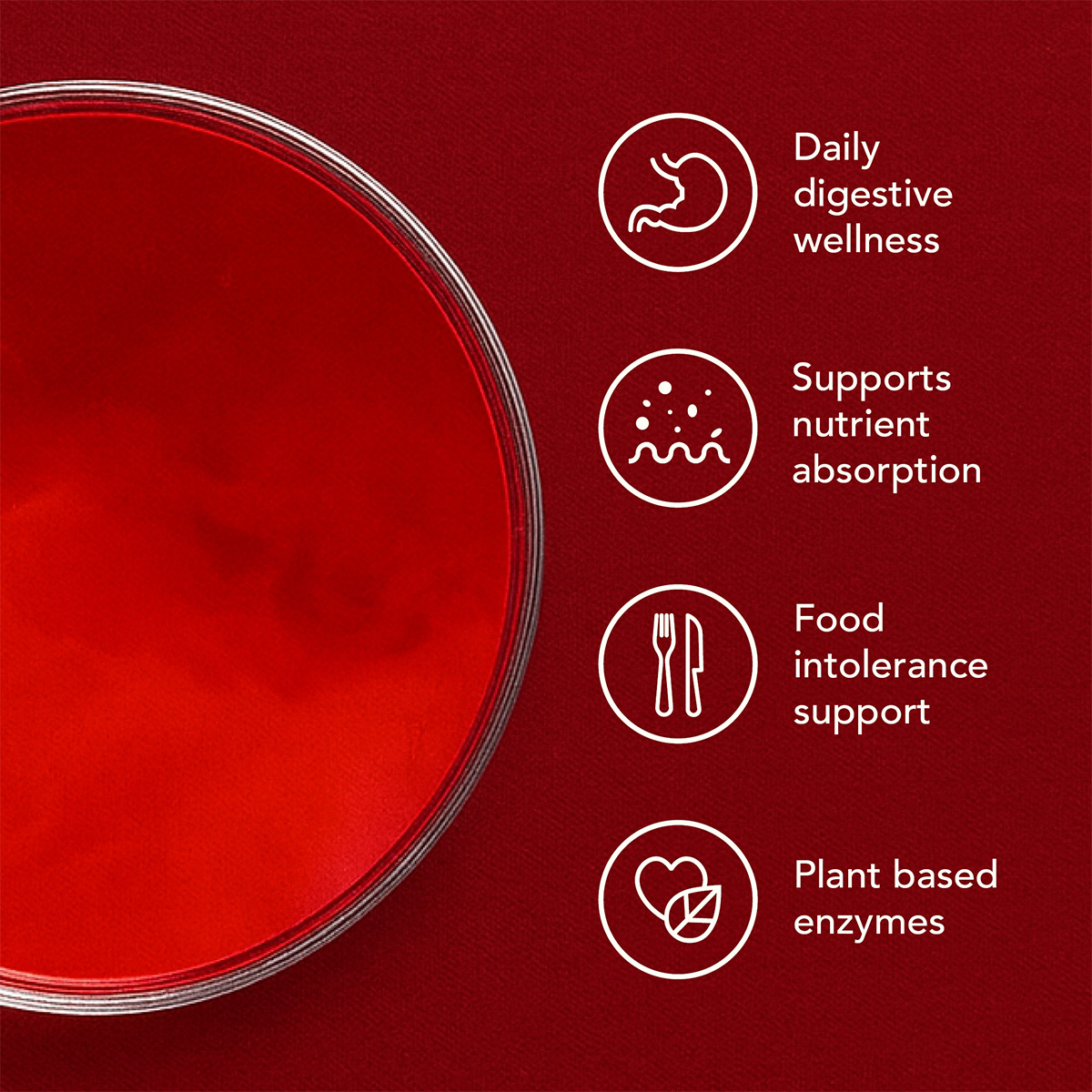 Crafted with a specialised blend of 14 full spectrum enzymes, this high potency complex works across the entire pH range of the digestive tract. By supporting the breakdown of a wide range of foods and nutrients from proteins, fats and carbohydrates to gluten, dairy and phenols, you can enjoy meals worry-free.