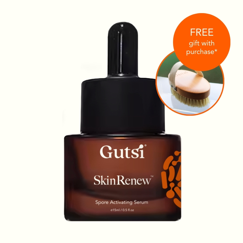Gutsi® SkinRenew™ is a biome balancing elixir powered by spore-based technology. This silken serum melts into skin, working in sync with your natural biology to restore harmony and unveil a complexion that feels calm, supple, and beautifully alive.