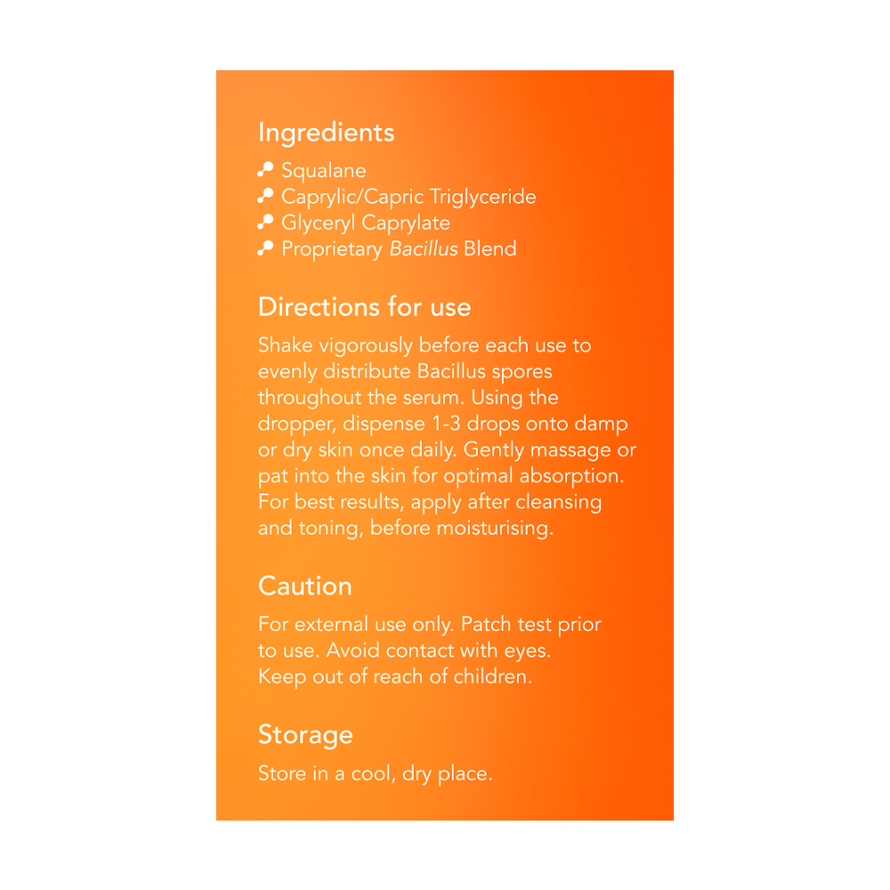 - Clinically driven formula – Engineered to optimise skin microbiome health and function.